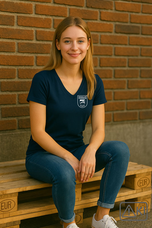 T-Shirt Damen mit Bedruckung mit dem Logo der Freiwilligen Feuerwehr Plate