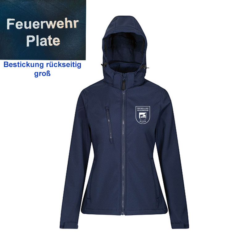 Womens Venturer 3-Layer Printable Hooded Softshell Jacket mit Bestickung mit dem Logo der Freiwilligen Feuerwehr Plate